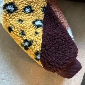 Girls Sherpa Bomber Jacket 💖 leopard print zip-up jacket . Excellent used condition. Still has a lot of wear left. Silky soft inside. Pink brown tan white yellow. Not sold in stores anymore.