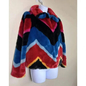 Alice + Olivia Jerri Color Block Faux Fur Coat Jacket Womens Size S Mobwife
