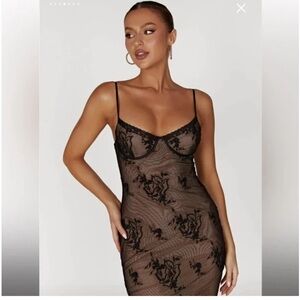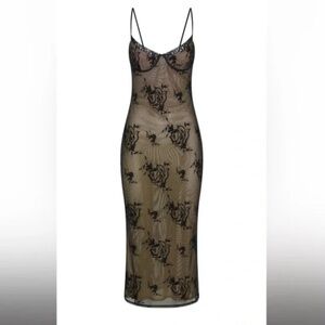 MESHKI Venice embroidered mesh midi dresss