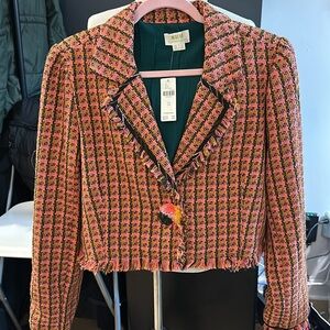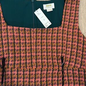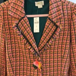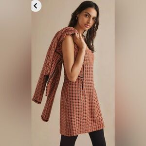 NEW Anthropologie Pink Tan Tweed Sheath Dress & Blazer, Size 14