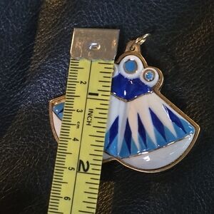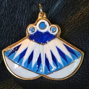 This is a super cool vintage Egyptian porcelain pendant handmade by my jeweler mentor in the 60's. These are hand poured porcelain and hand painted blue and gold enamel set in gold plated frames. This is the symbol of rebirth and purity. Please ask questions and make an offer. I can't say yes if you don't ask!
