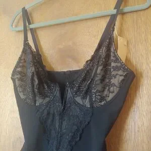 NEW w/ tags Popilush Black Beige Floral Lace Deep Plunge Wire V Neck Shapewear Bodysuit with Tummy Control.