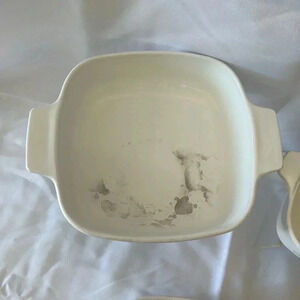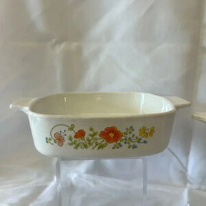 Fabulous Vintage Set of 3 Corningware Wildflower Casserole Bakeware Dishes. All in great condition. The 1 quart dish has some marks on the interior. Needs to be properly cleaned.