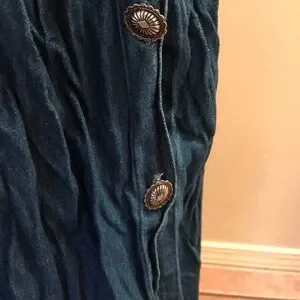 Denim cowgirl tiered skirt high waisted slit down side elastic waist band cowgirl size large