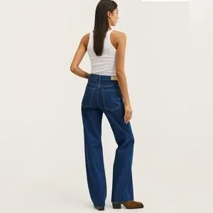 MANGO Women's 6 High Waist Wide Leg Jeans Blue