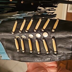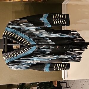Sunriders Western Wear Turquoise & Black Fringe Bone Bead Riders Jacket sz L