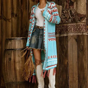 Multicolor Casual Women's Geometric Pattern Cardigan