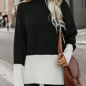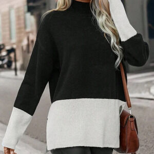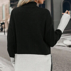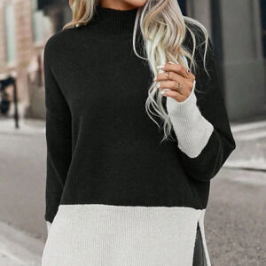 Multicolor Preppy Womens Two Tone Drop Shoulder Split Hem Drop Shoulder Sweater