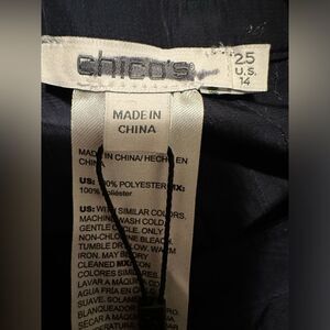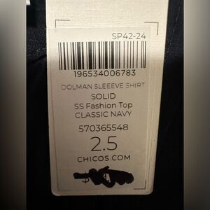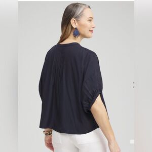 Chico’s Pintuck Dolman Sleeve Shirt Size 2.5 US 14 Neck Button Cap Sleeve Navy