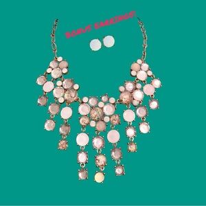 Set Of Boho Faux Moonstone and Abalone Bib Necklace + Stud Earrings