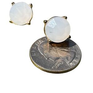 Earrings come as a free gift. Faux moonstone on gold tone frame. Bought separately (not same brand and frame is more on gold side) but they coordinate nicely.