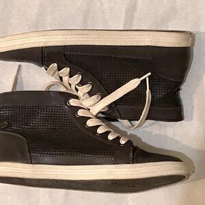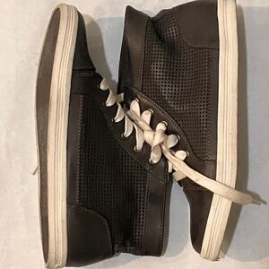 Calvin Klein Jeans “Martina” 8.5 Gray/White Hi-Tops Open Pattern