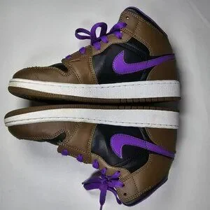 Nike Air Jordan 1 Mid GS Shoes Mocha Brown / Purple DQ8423-215 Size 5Y / 6.5W