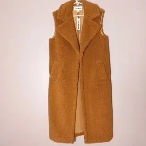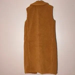 Steve Madden long length open sherpa vest with pockets in a warm medium brown color (dark caramel) - new with tags