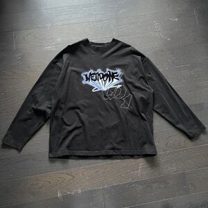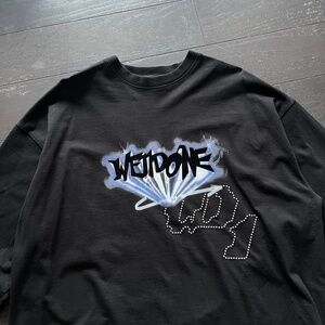 We11Done Welldone crystal logo long sleeve shirt in black size small