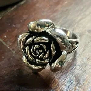 Silver Rose Ring, shiny and detailed. A small cocktail ring or just fun for special occasions or when you need something extra for every day. Bought new and never worn except to try on.