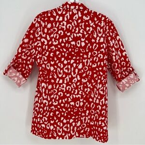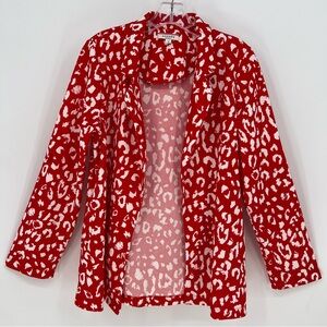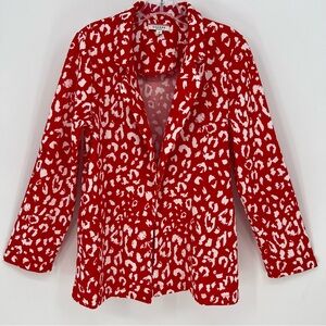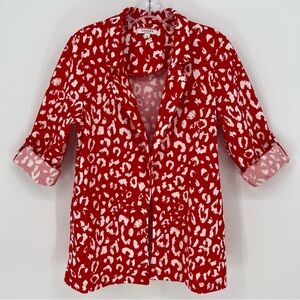 Andree By Unit Blazer Womens Small Red Cheetah Print Long Sleeve w/Roll Up Tabs