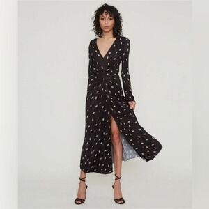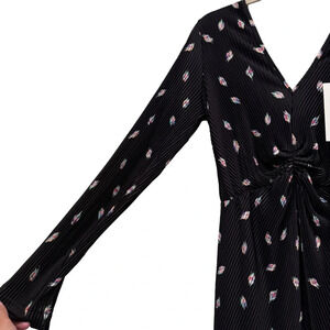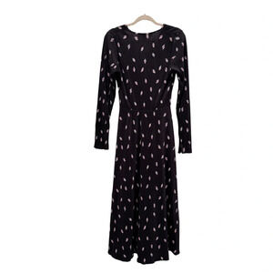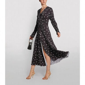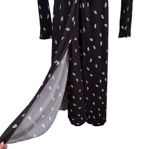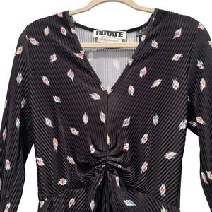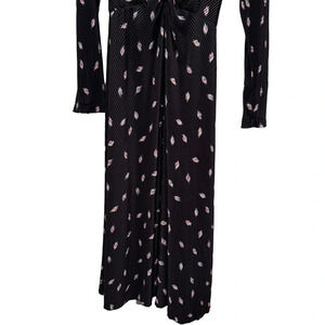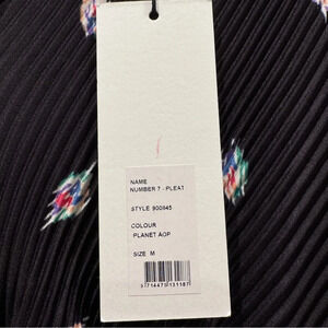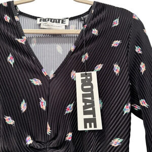 NWT Rotate Birger Christensen Number 7 Pleated Black Midi Dress Planet AOP SizeM