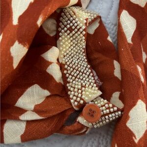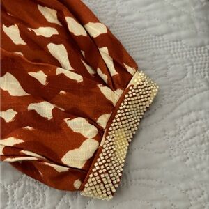 Beautiful beaded sleeves by the wrist.