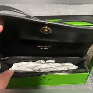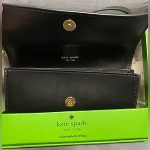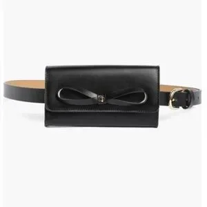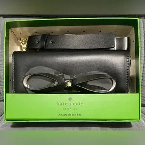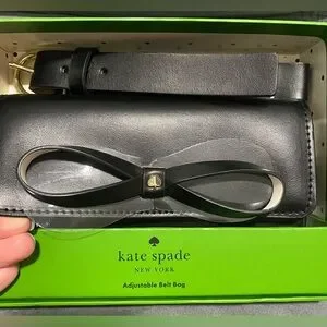 Crafted by the esteemed kate spade new york, this belt bag is a fusion of fashion and function, designed for the modern woman. Its sleek black leather exterior is complemented by an eye-catching bow accent, adding a touch of elegance to this practical accessory. The bag features an adjustable belt for a tailored fit and is sized to accommodate essentials without the bulk. Ideal for both everyday use and special occasions, it offers a sophisticated solution for hands-free styling.
