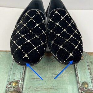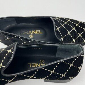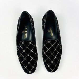 Chanel CC Logo Velvet Moccasin Loafers Black