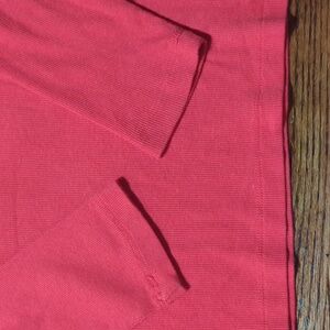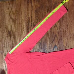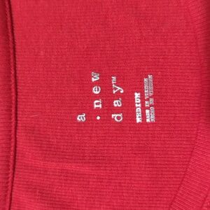 A New Day women's long sleeve shirt. Red. Size medium. Good, gently used condition. Material does have lots of stretch to it. Great for layering. Small discolored spot on sleeve, see last photo.