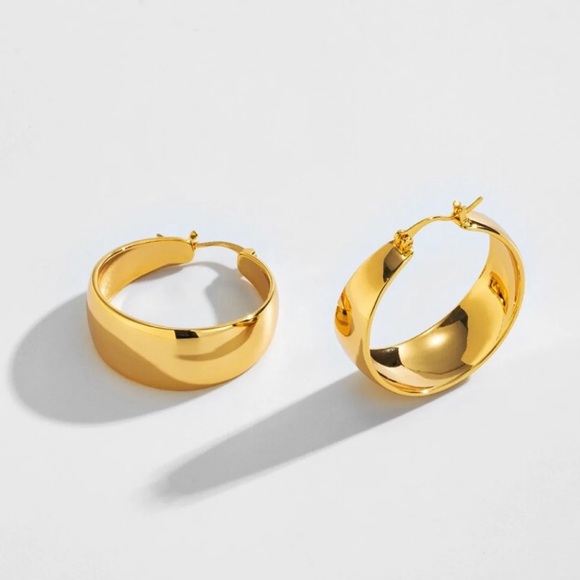 NEW 18k Gold Plated Paperclip Cc Stainless Steel Hollow Chain Hoop Earrings