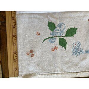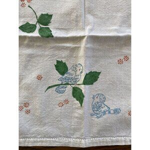 Vintage Hand painted Table Runner With Cinderella Blue Bird & Leaf Design