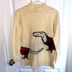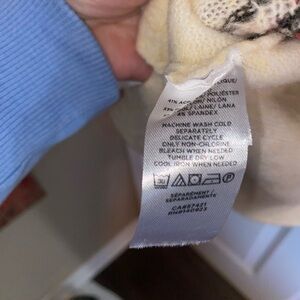 Side slits. Hits at hip. Soft knit. 26 1/2". 41% Acrylic 33% Polyester 17% Nylon 5% Wool 4% Spandex. Machine washable
