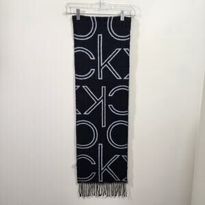 Calvin Klein black & gray reversable CK logo long scarf with fringe