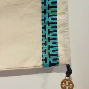 Like new, canvas Tory Burch down string shoe bag/ purse bag. Measures 15”x12”.