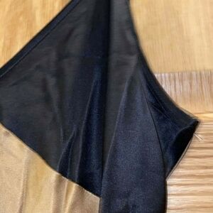 Color-blocked triangular cups and a front seam update this bias-cut satin slipdress that pours over your figure like liquid silk down to a rippling hem.