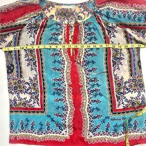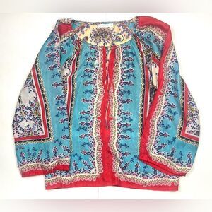Used in good condition Sundance Johnny Was handkerchief print blouse. Pull over style with a front tie.