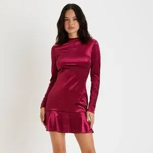 Lulus Flawless Charm Velvet Mock Neck Tiered Long Sleeve Mini Dress Berry Pink