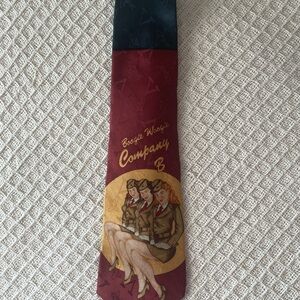 Stylish maroon tie featuring Boogie Woogie Company B design. Perfect for adding a vintage touch to your outfit.