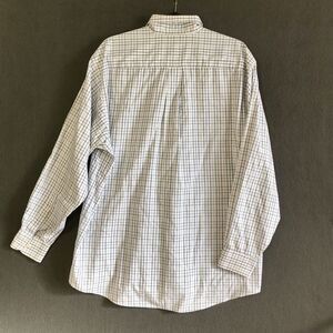 Button Up Dress Shirt Men's Sz L White Long Sleeve Blue Checkered George Western