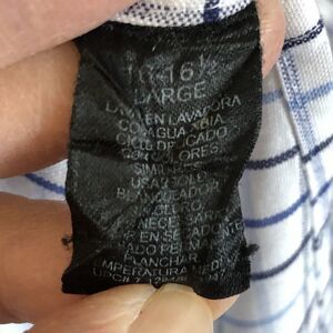 This shirt is in good used condition. There is some yellow discoloration at the neckline on the back, inside of the collar. Please see photos for appearance and approximate measurements. Thank you.