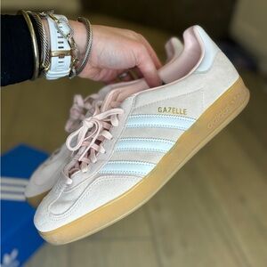 Adidas Original Gazelle Indoor- sandy pink/white/gum 9.5 new without tags.