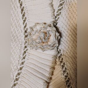 NWOT Ruby Rd. Womens Collared Knit Cardigan In Cream & Shimmery Gold Trim Sz. XL