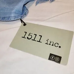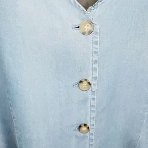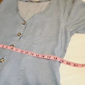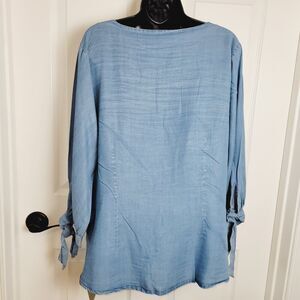 1511 Inc Top Woman XLarge Blue Chambray Fitted Tie Sleeve V-Neck Casual Boho Y2K