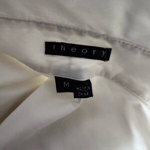 Theory Womens Marie Long Sleeve Blouse Top Sz M Medium Collar Cotton Blend Ivory