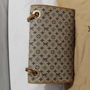 Authentic Gorgeous denim Mini Camille Chain Shoulder Bag! Has original authentic Louis Vuitton dust bag! Fold over closure, zipper pocket inside and gold hardware! A piece of the leather in the chain strap is loose but otherwise the rest is in great condition! See pictures please! This bag is amazing! Light rubbing and patina on trim! Gently used and no real bad damage!
