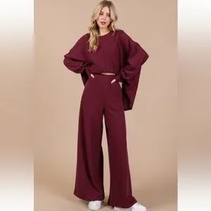 RESTOCKED Boho wide leg pant 2-piece sweatshirt set