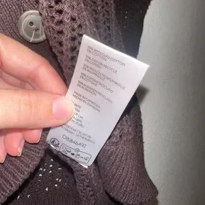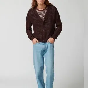 Open knit sweater with a button down front and ribbed knit trims
