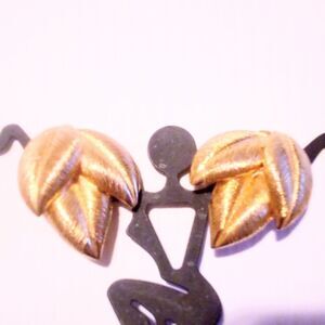 Vintage Brushed Gold Tone Leaves Clip On Earrings
