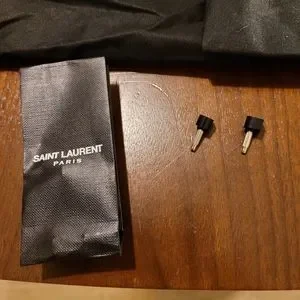 Stunning black stiletto (suede) leather "Kid Scamosciato" heels. Must-have staple for your closet. Sexy peek-a-boo side. Replacement heel tips included. Authentic pair purchased at Saint Laurent Store on Rodeo Drive in Beverly Hills. Excellent condition. Size 7.5 U.S. - 37.5 European.