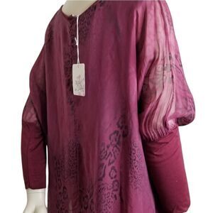 Made in Italy Women's Maroon Layered Sheer Top 3/4 Sleeve