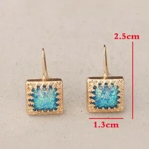Blue Opal, Faux, Confetti Glitter Square Dangle Hook Gold color Earrings, Gift