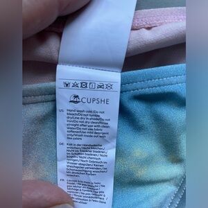 NWT Cupshe Pastel Tie Dye V-Neck Top & Strappy Cheeky Bikini Swimsuit, Size XS