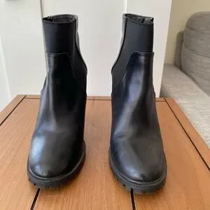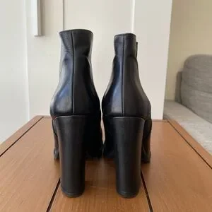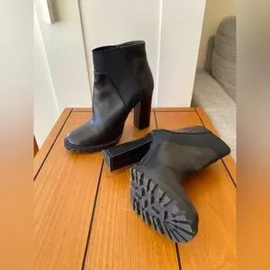 Zara Basic Women's Black Leather Lug Sole Ankle Boots Size 36